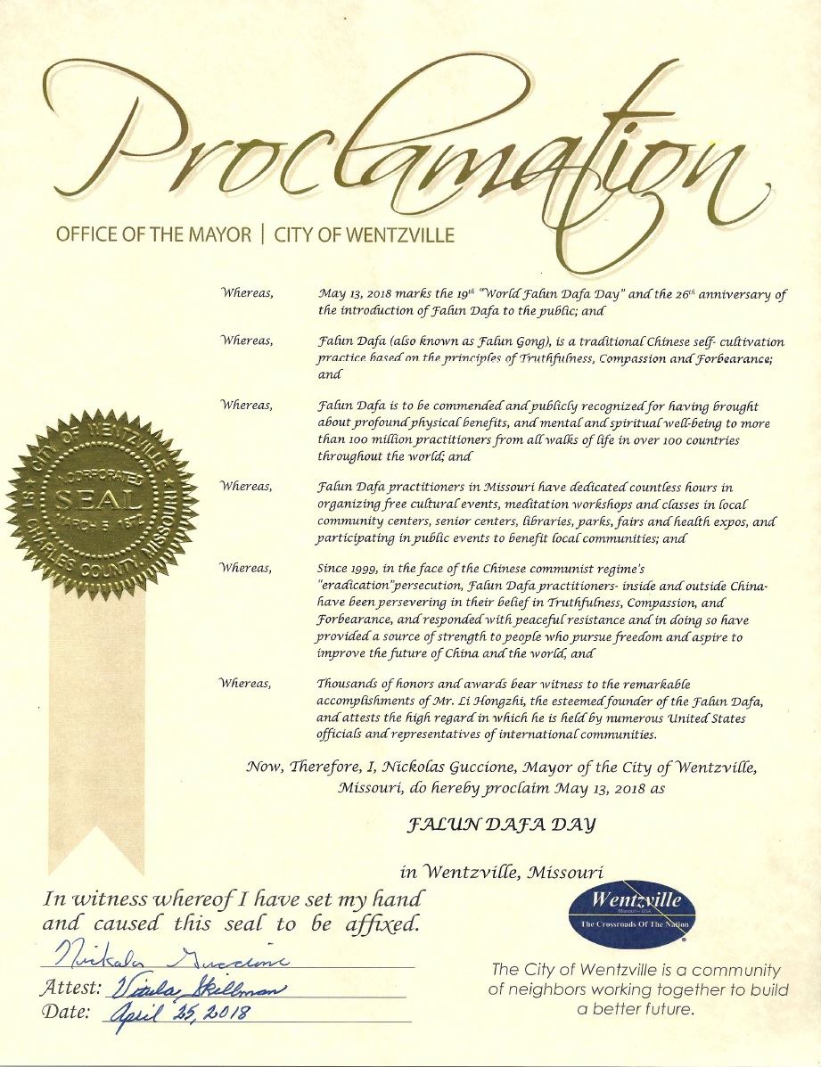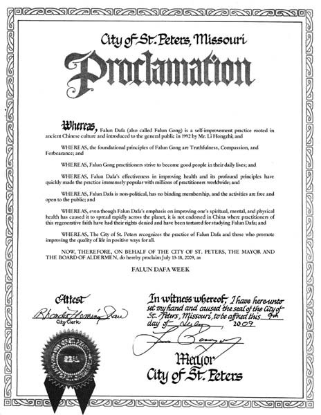 美国密苏里州圣查尔斯市褒奖法轮大法