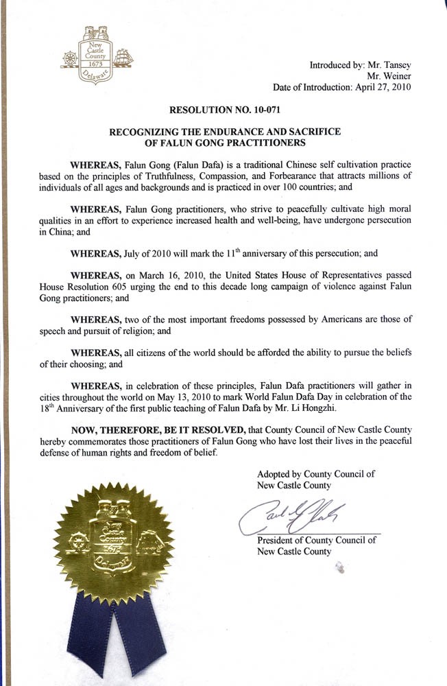 美国马里兰州政要褒奖法轮大法 【明慧网】