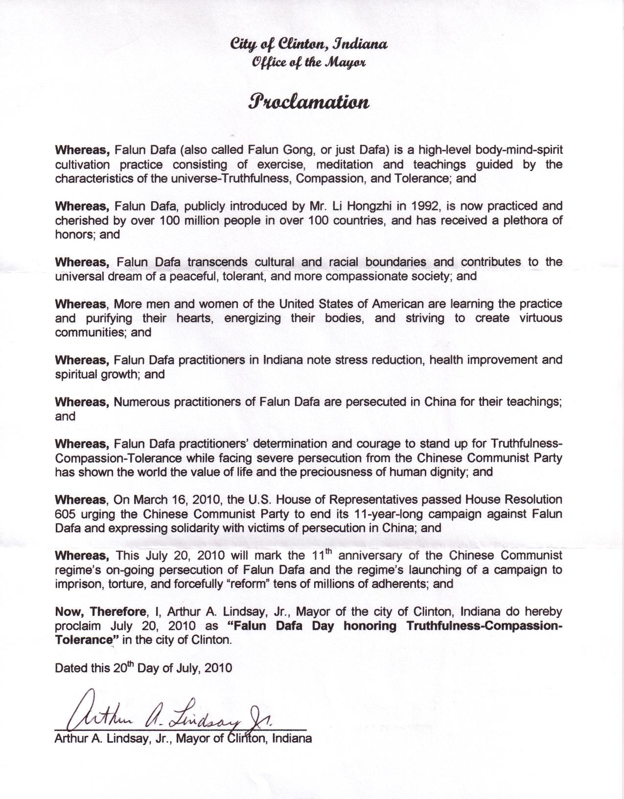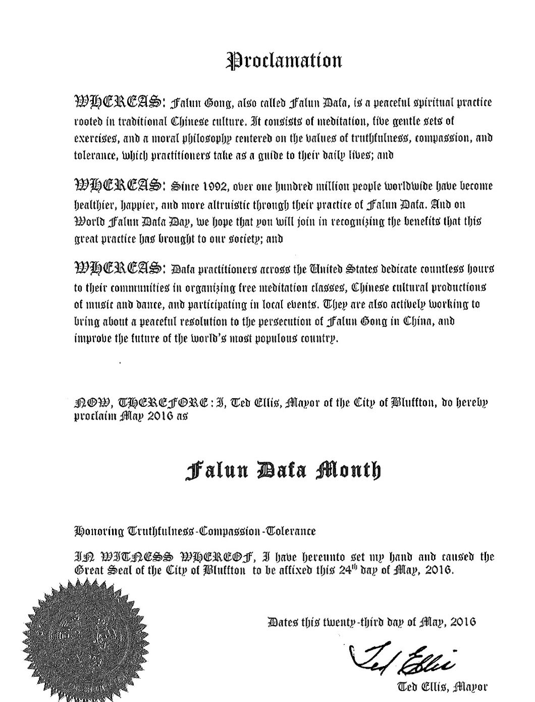 美国乔治亚州迈瑞亚塔市市长褒奖法轮大法