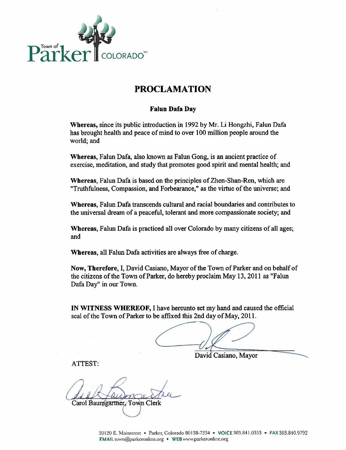 犹他州盐湖县宣布“法轮大法日”图为褒奖状