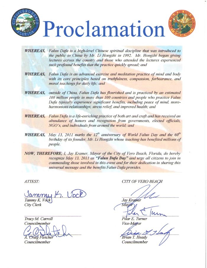 美国佛罗里达州奥兰多市褒奖法轮大法