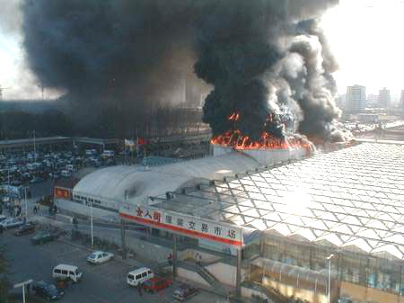 位于北京东三环边的莱太花卉市场发生大火,大厅化为灰烬,至少有3人死亡 2002-01-07