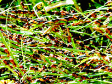 数万蝗虫突袭呼和浩特,图为密密麻麻的蝗虫铺满了院落 (新华社) 2003-08-02