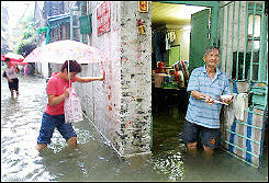 华东地区特大洪水切断115万人与外界的联系 2003-7-9