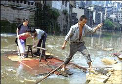 特大暴雨突袭重庆全境 --居民被洪水困在楼上 2002-06-13