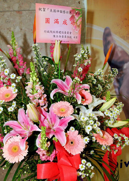 神韵国际艺术团在台北市国际会议中心演出图为中华民国马英九总统特赠花篮祝贺
