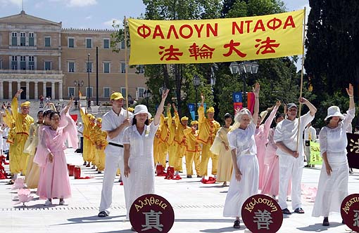以色列法轮功学员在集体炼功 以色列