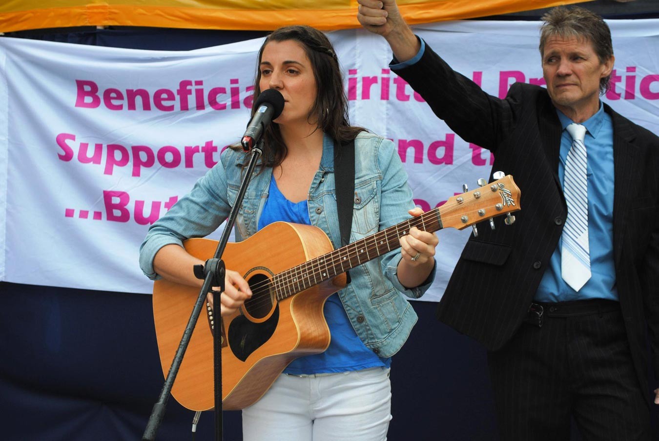 法轮功学员及民众庆祝法轮大法日,政要现场支持图为议员 Jane McKenna