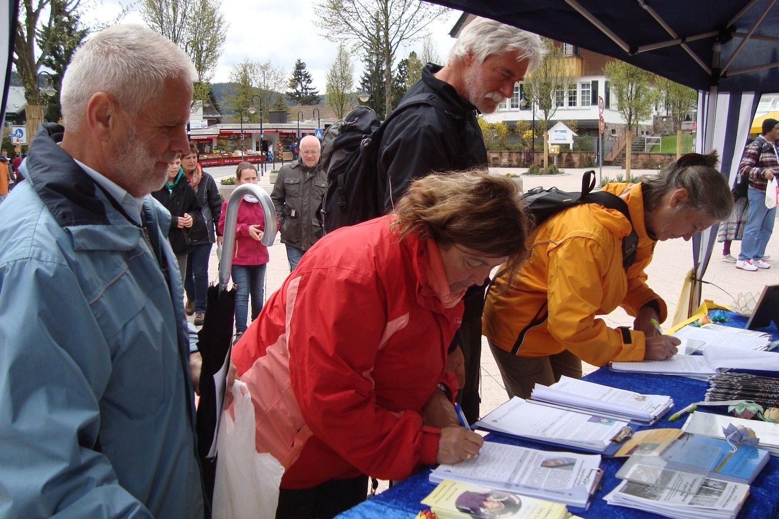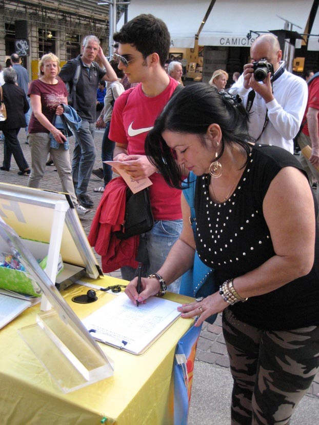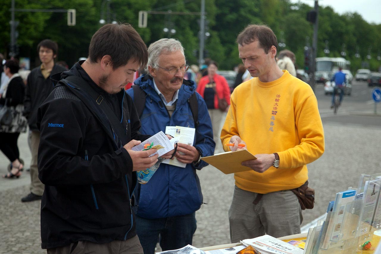 路人签名支持法轮功,呼吁国际社会调查中共活摘法轮功学员器官的罪行