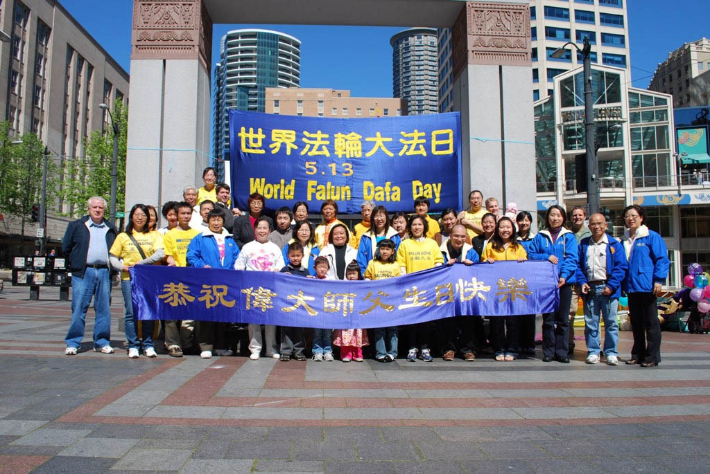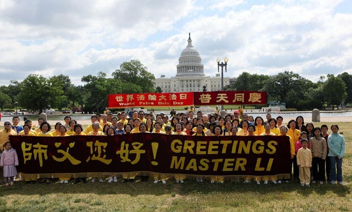 法轮功学员在华府庆祝法轮大法日,各族裔学员心存感恩