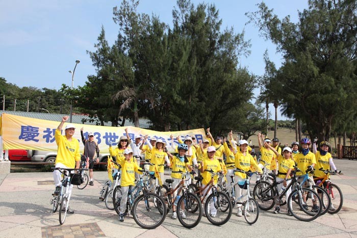 法轮功学员在垦丁骑单车,弘扬法轮大法,欢庆世界法轮大法日