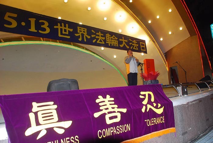 法轮功学员在中坜庆祝法轮大法日,举办活动,谢师父救度洪恩,县议员徐景文发言