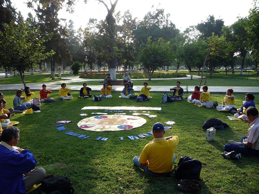 秘鲁法轮功学员在利马集体炼功庆祝世界法轮大法日
