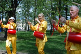 俄罗斯学员庆祝世界法轮大法日,腰鼓表演