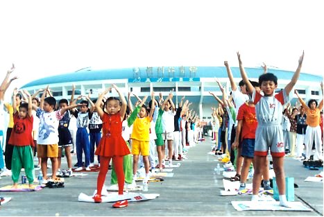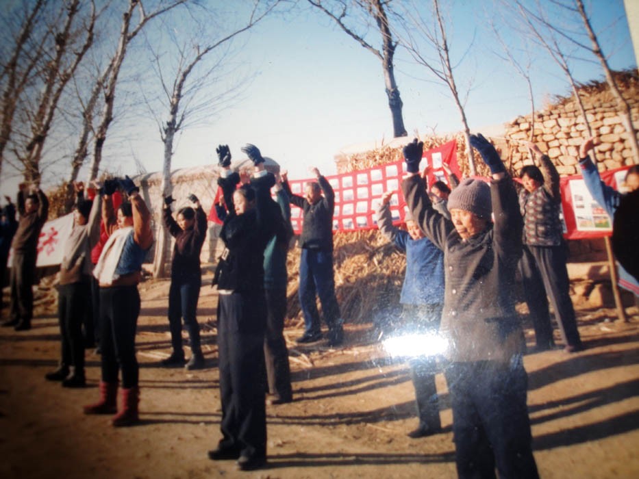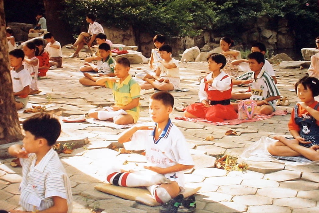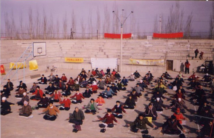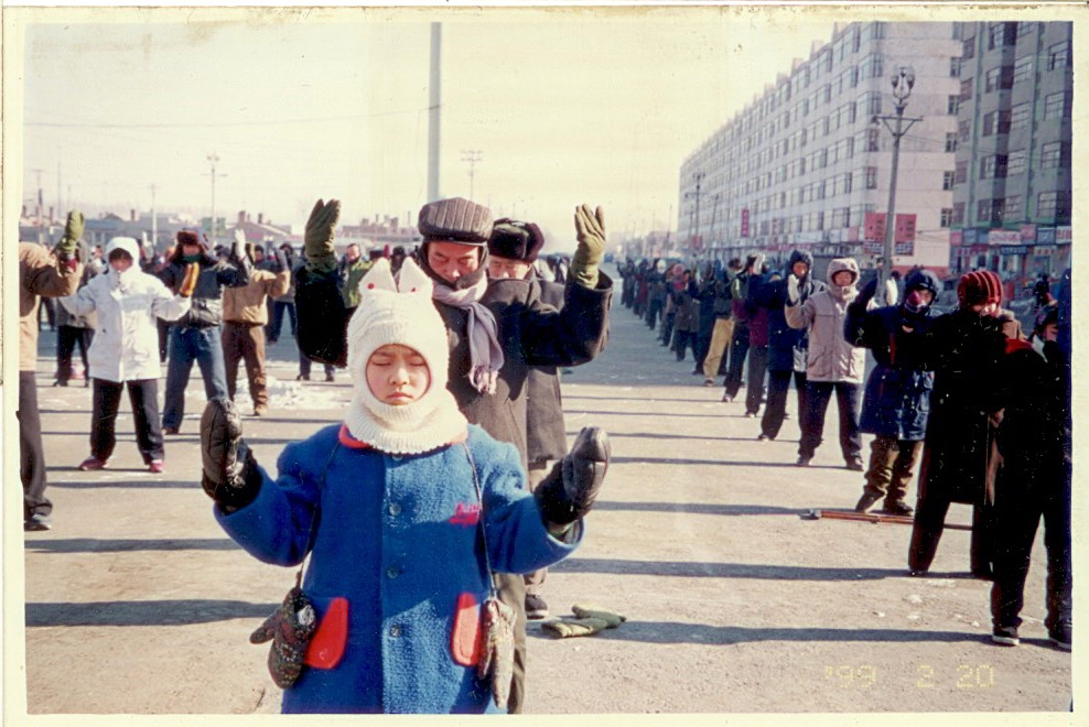 法轮功被无理镇压前,北京法轮功小弟子放学后在集体炼功