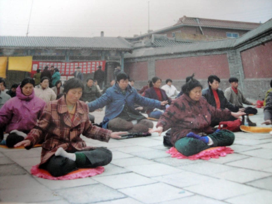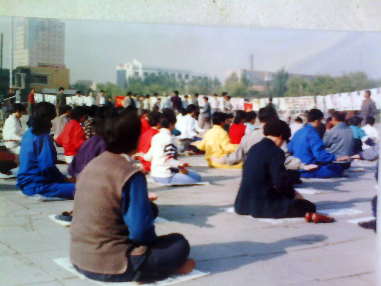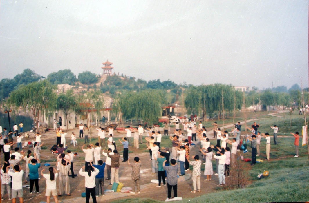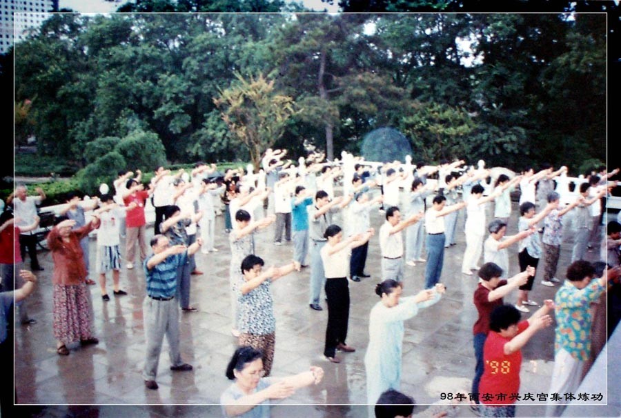 1999年法轮功遭无理打压前 广州小弟子在炼功