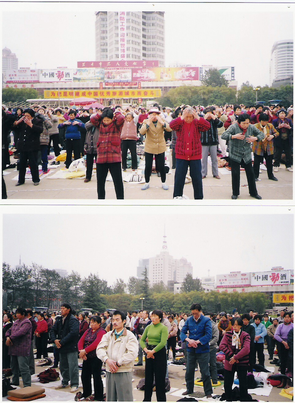 1998年武汉法轮功学员大型排字炼功 中国 湖北 1998