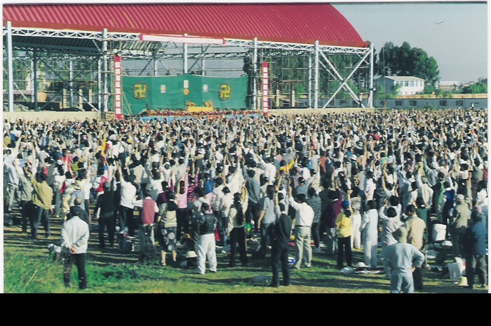 1998年乐山法轮功学员气势磅礴的大型排字炼功 中国 四川 1998