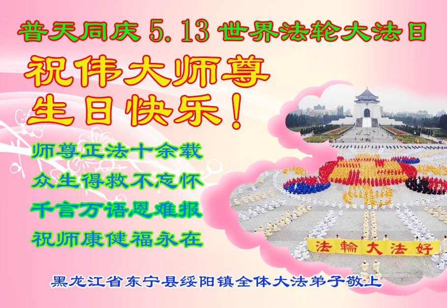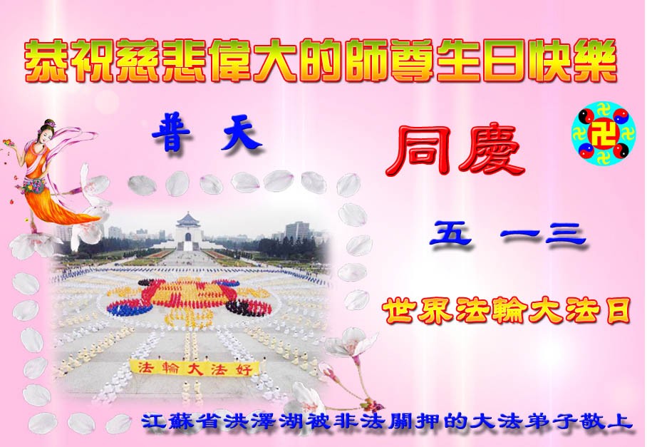 被中共非法劫持的大法弟子恭贺师尊华诞暨世界法轮大法日