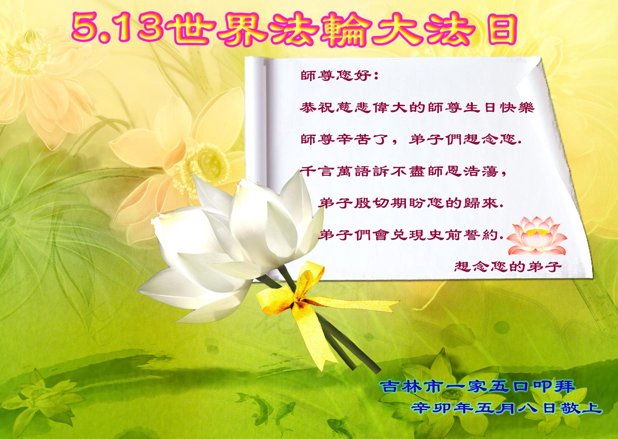 吉林榆树大法弟子恭祝师尊生日快乐