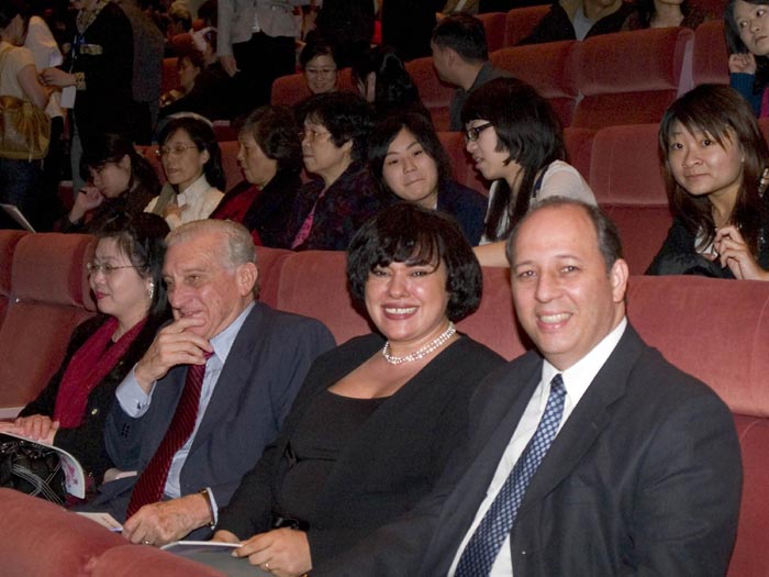 神韵在台北市世贸演出撼动中外人士图为各国外交使节与夫人参观神韵艺术团的表演