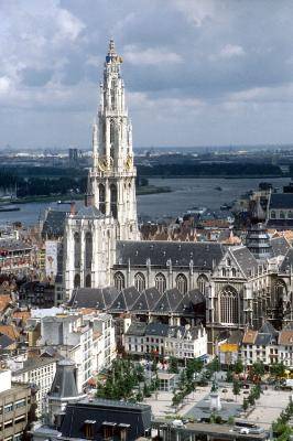 神韵巡回艺术团在比利时Antwerp演出图为著名的安特卫普圣母大教堂