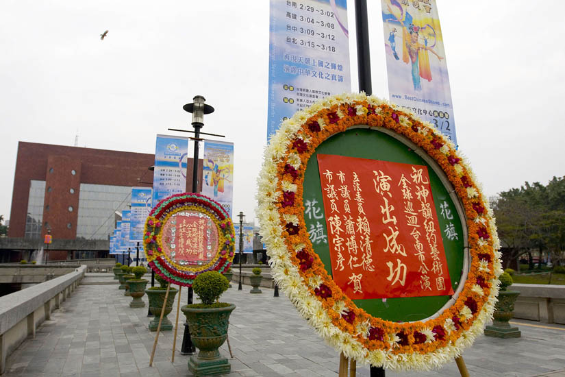 神韵艺术团在台南演出立委赖清德、市议员萧博仁及陈宗彦致赠花圈祝神韵演出成功2008-2-29
