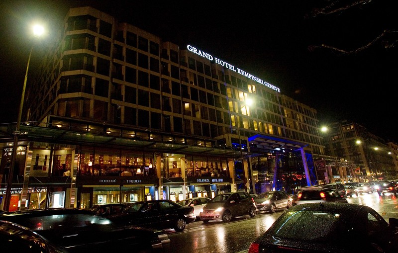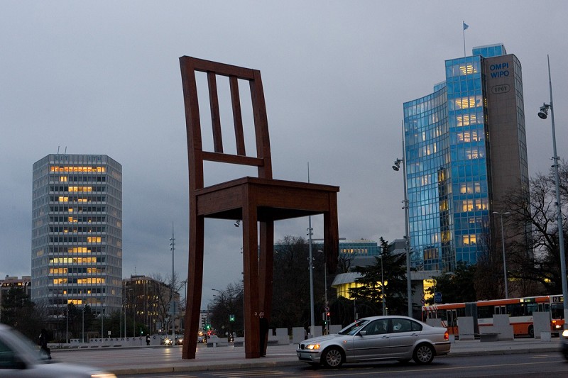 神韵巡回艺术团在日内瓦雷蒙剧院演出图为瑞士日内瓦的地标之一联合国人权广场2008-3-3