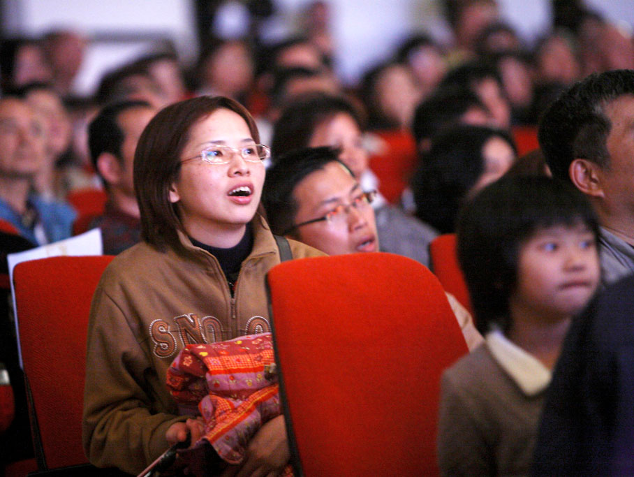 新唐人晚会震撼艺术之都 图为比利时国际电影节的常任评委安柯先生一家三代来观看演出 2007-2-24