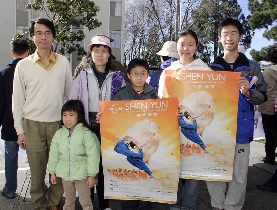 新唐人新年晚会感动好莱坞 观众盛赞晚会谴责中共干扰 图为观众与新唐人义工合影2007-1-10