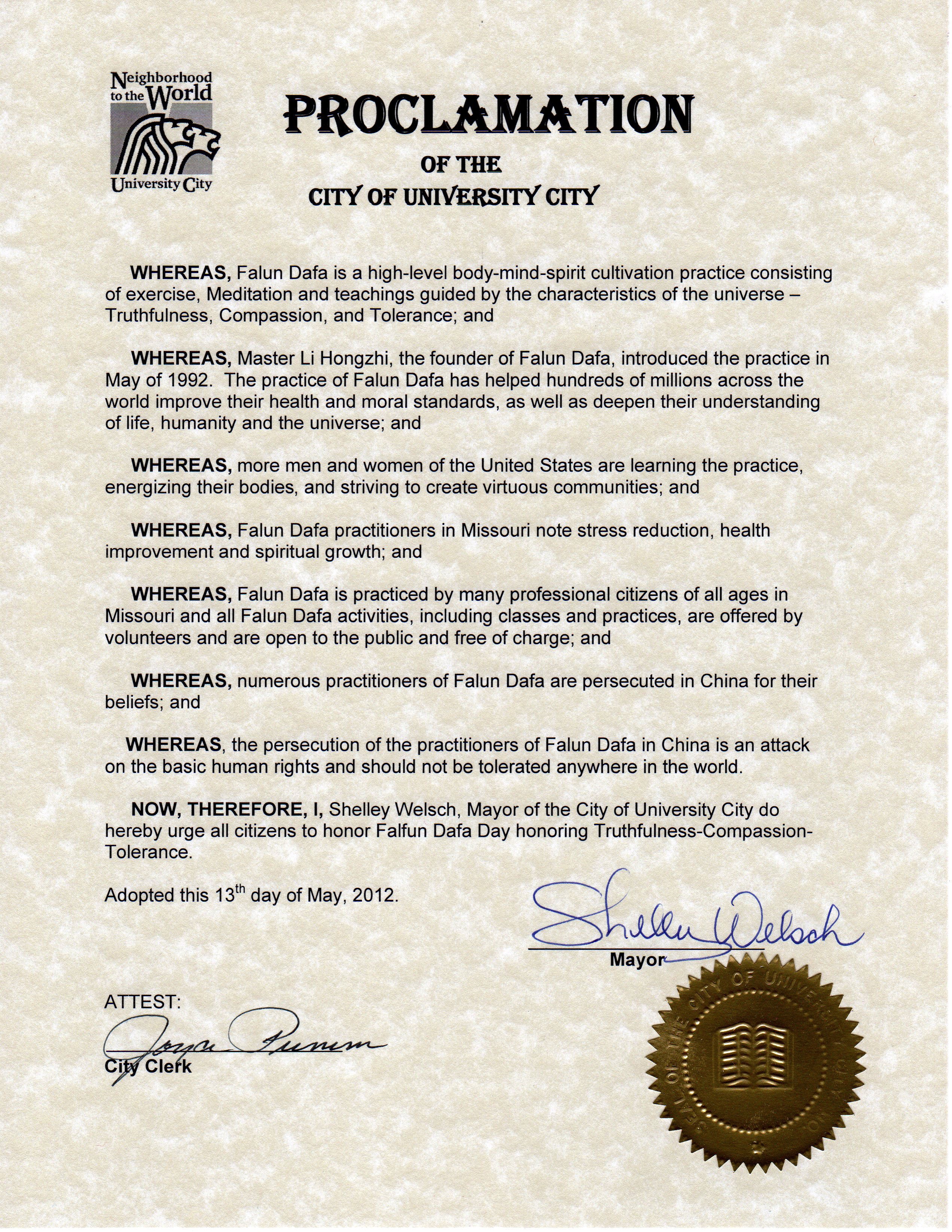 美国肯塔基州路易丝维尔市宣布法轮大法日 - 法轮大法明慧网