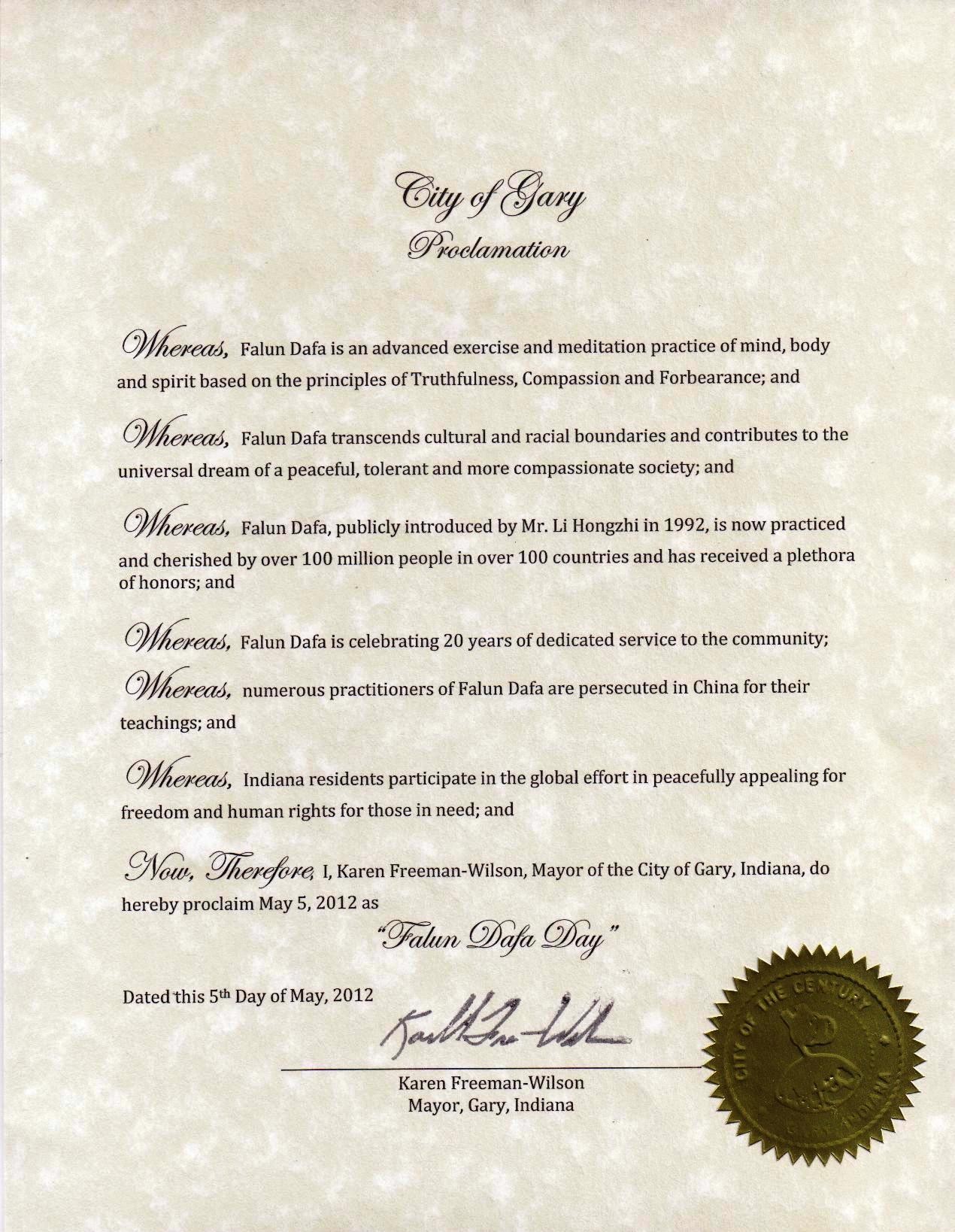 美国印第安纳州特雷霍特市宣布法轮大法日