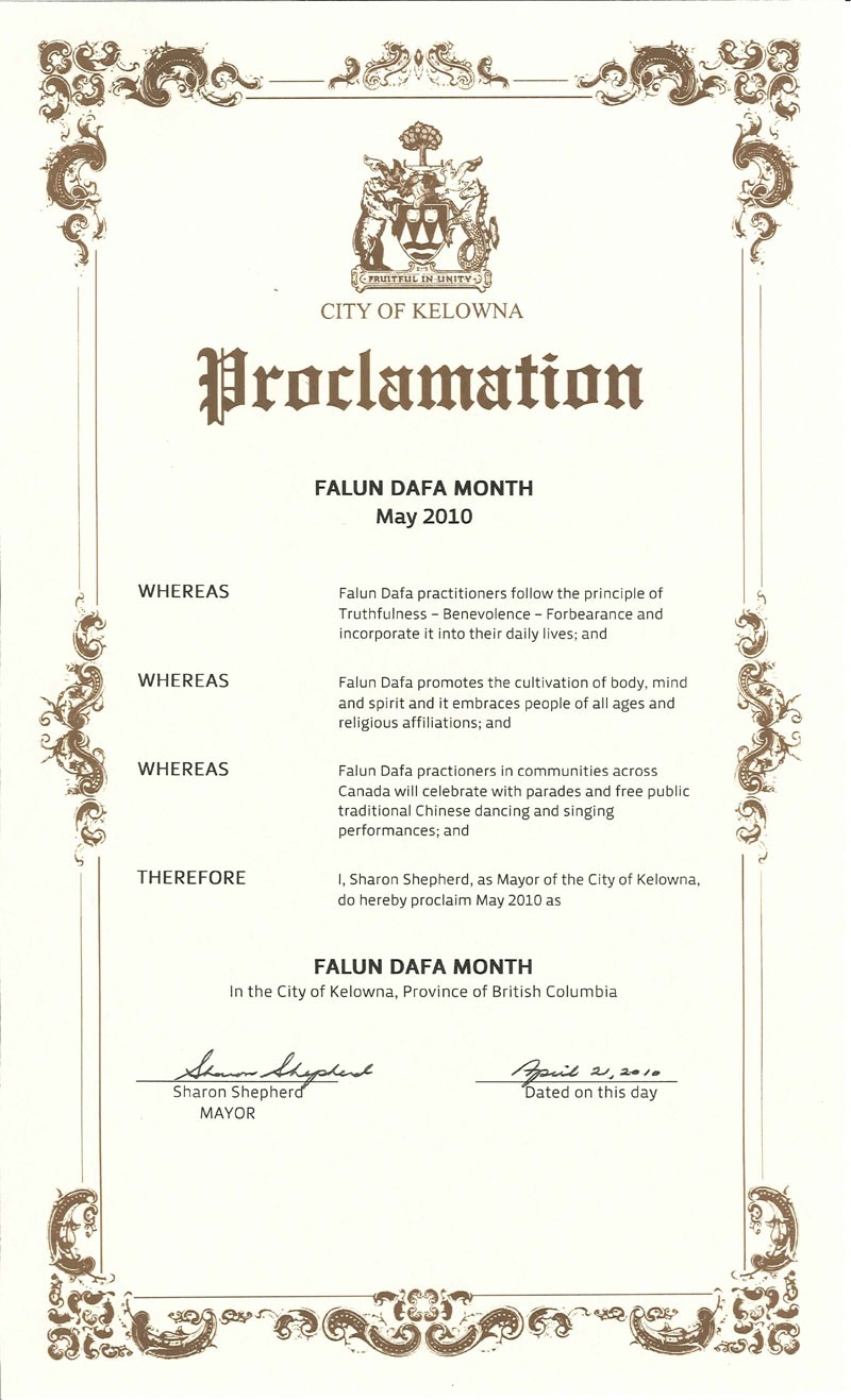 加魁省圣·林·劳伦蒂德市议员宣布法轮大法月