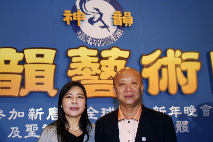 神韵在台北市世贸演出图为基隆市文化局长杨桂杰与夫人表示让法轮大法精神传达出来
