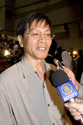 神韵在台北市世贸演出撼动中外人士图为综合研究院顾问、中国问题学者阮铭教授(左)