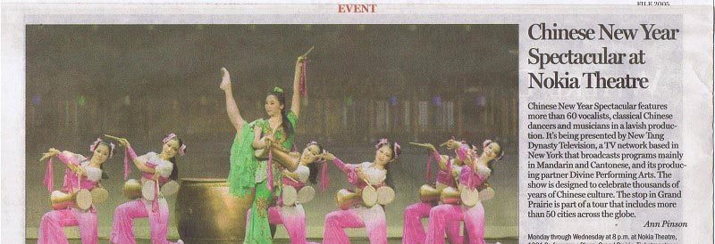 达拉斯晨报报导由神韵纽约艺术团主演的新唐人华人新年晚会的信息2008-1-4