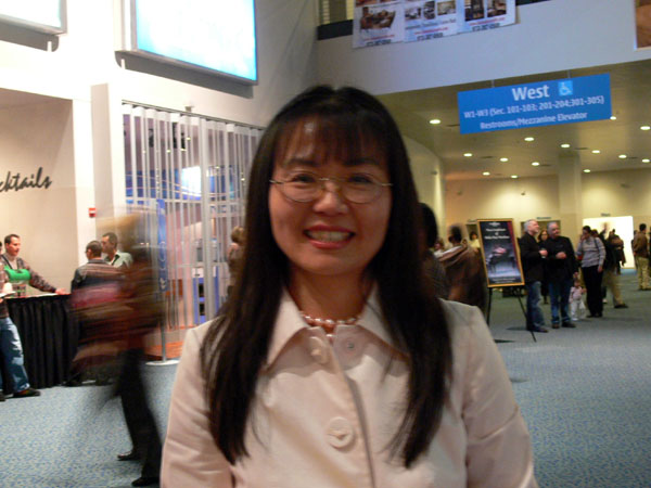 美国德州艾迪森市市长周建源夫人林斯奇女士接受采访表示整个表演都非常的赞赏2008-1-7