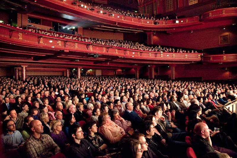 神韵台中演出观赏人潮再现图为赵雅博神父表示艺术是为了找到人生,找到真理
