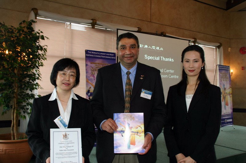 左:南亚社区领袖克克莱蒙•洛布里格;中:金融分析师琳茜•哈琪;右:基金募集顾问汤尼•迪卡罗观看了神韵