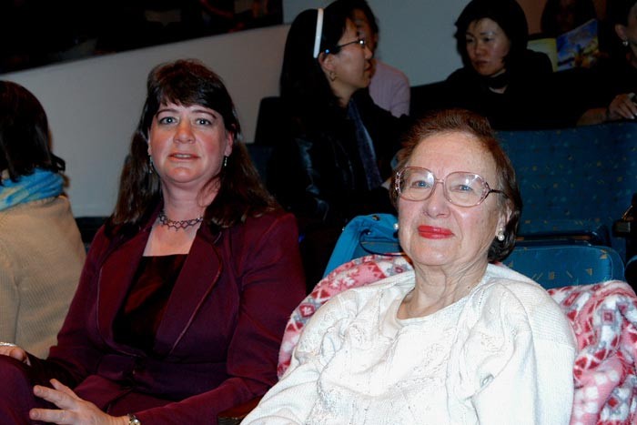 PINKY)(中)看完演出后,订最好的票,第二天带母亲(左)来看,右为友人凯瑟琳