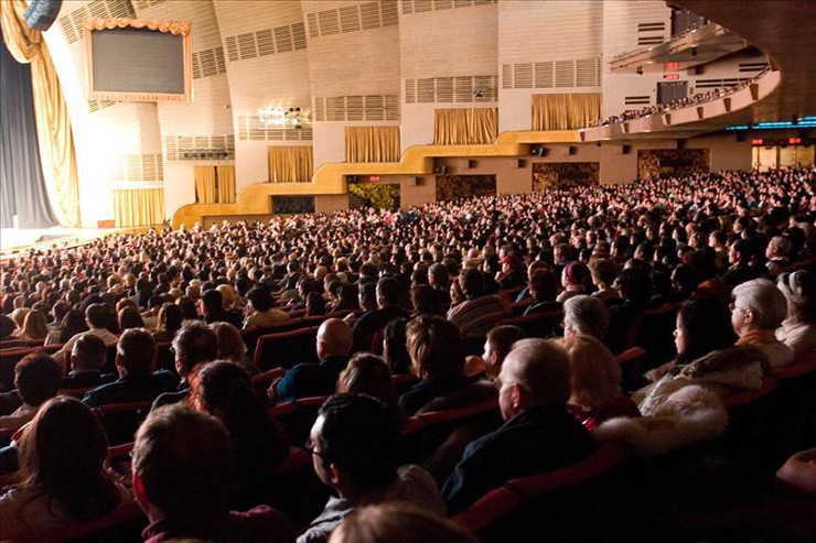 全体观众起立热烈鼓掌,向神韵艺术家致谢