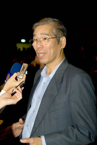 神韵艺术团在高雄演出,赖鸿进(左)文化艺术协会理事长表示晚会的气氛非常的温馨、安详2008-3-7