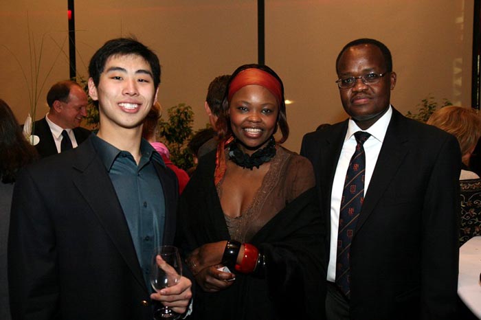 神韵晚会在维也纳演出图为肯尼亚大使Julius Kiplagat Kandie与神韵舞蹈演员合影留念2008-3-7