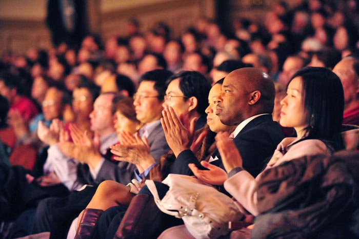 纽约金融界人士:神韵演出为中国带来希望图为他们起来鼓掌,向演员致意