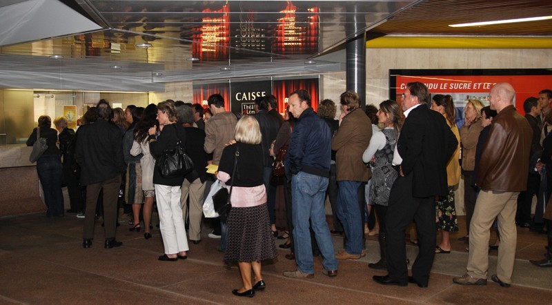神韵在日内瓦演出,观众在演出前在剧场售票窗口前排长队