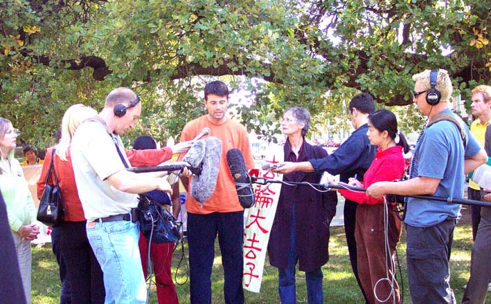 澳西人法轮功学员天安门归来后在弗拉格斯塔夫(Flagstaff Gardens)公园举行了新闻发布会