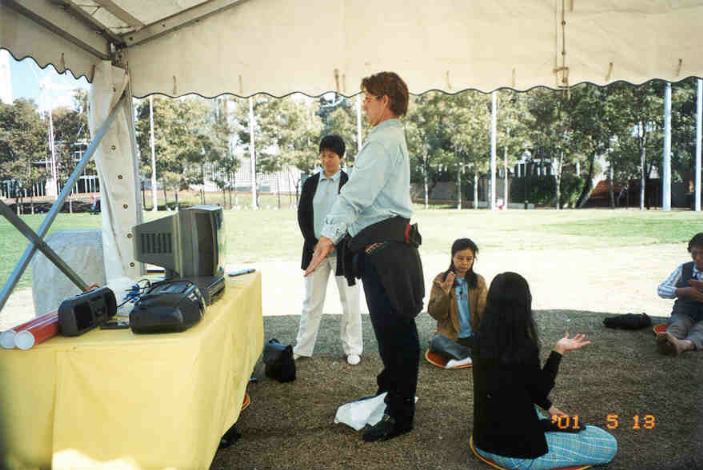 2001年台湾“世界法轮大法日”系列活动--室外的园游会中小弟子在炼功区演示功法