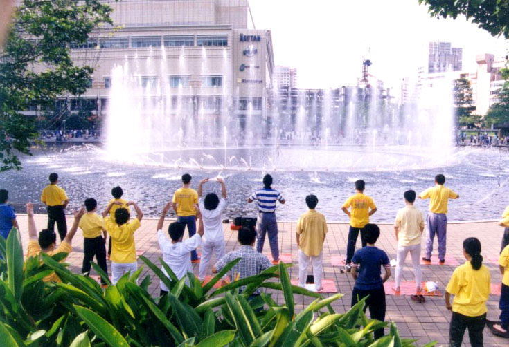 世界法轮大法日--马来西亚吉隆玻双峰塔下洪法炼功