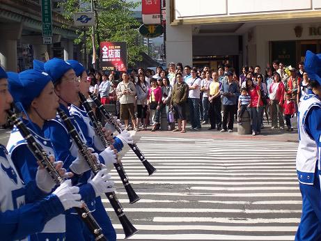 大台北地区的学员在信义广场举办庆祝活动,欢庆大法洪传十六年,图为天国乐团 2008-5-11