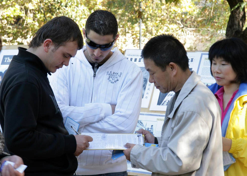 澳洲昆士兰学员法轮大法日揭露中共迫害图为民众签名谴责中共迫害